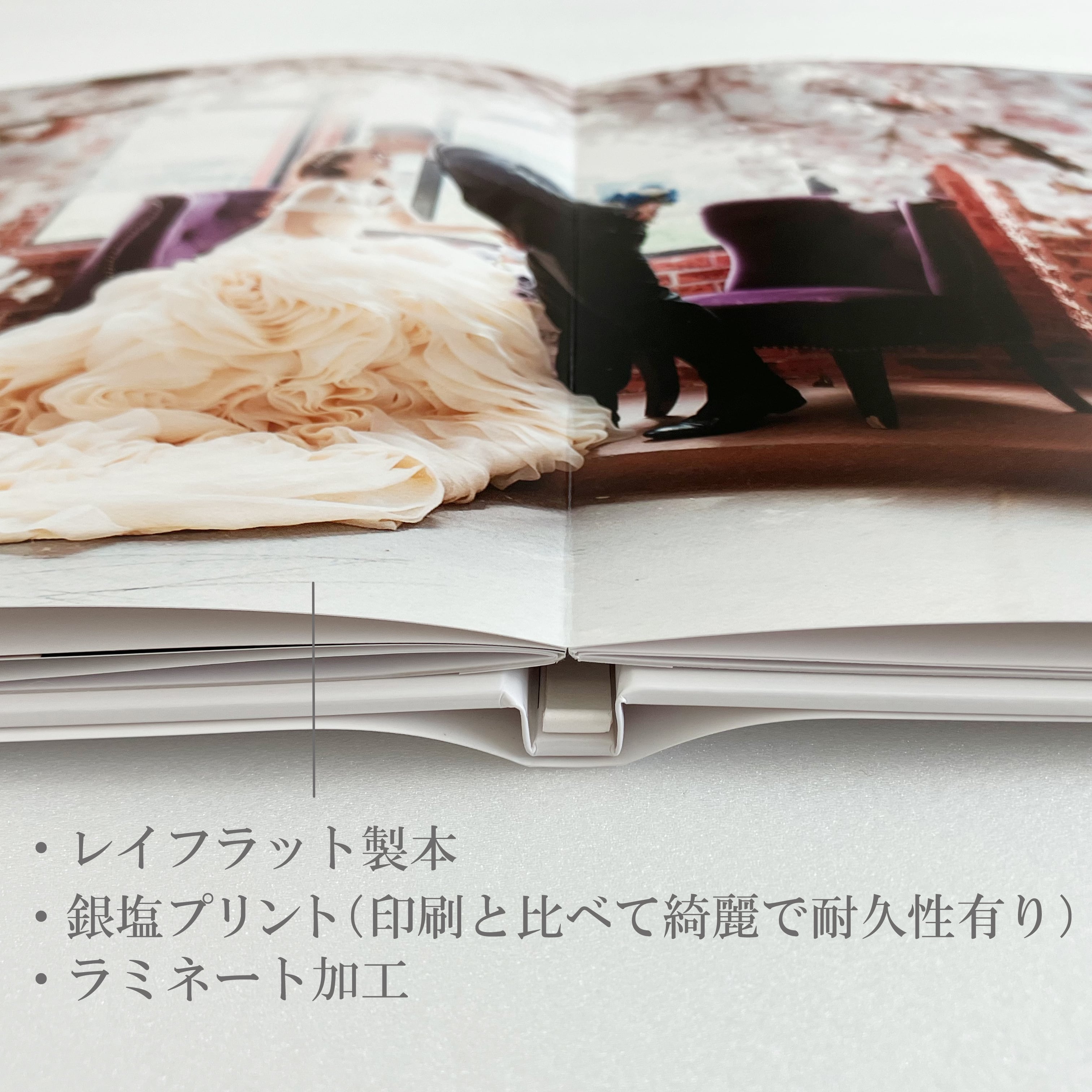 ■【アルバムの素材】ネットでは加工方法でコストを下げて販売しているアルバムが多いです。shinotoraでは、印刷よりも耐久性の高い銀塩プリントやニス加工など、耐久性の高い方法のものを取り扱っています。式場取り扱い商品が主ですが、間に式場さんなどを挟まずリーズナブルな価格で販売しています。